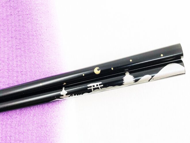 もう1本のお箸には星空に月そして裏面が太陽で、箸名の「京の夜と朝」を表現しています。