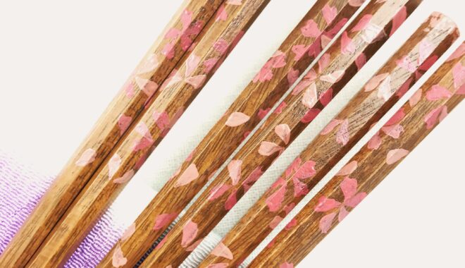 日本人にとって、桜か富士山を見れば笑みが浮かびます。笑みは幸せの第一歩です。お花見はハレの宴、幸せな気持ちになります。桜の木で八角箸をつくりました。それも桜満開の絵柄です。