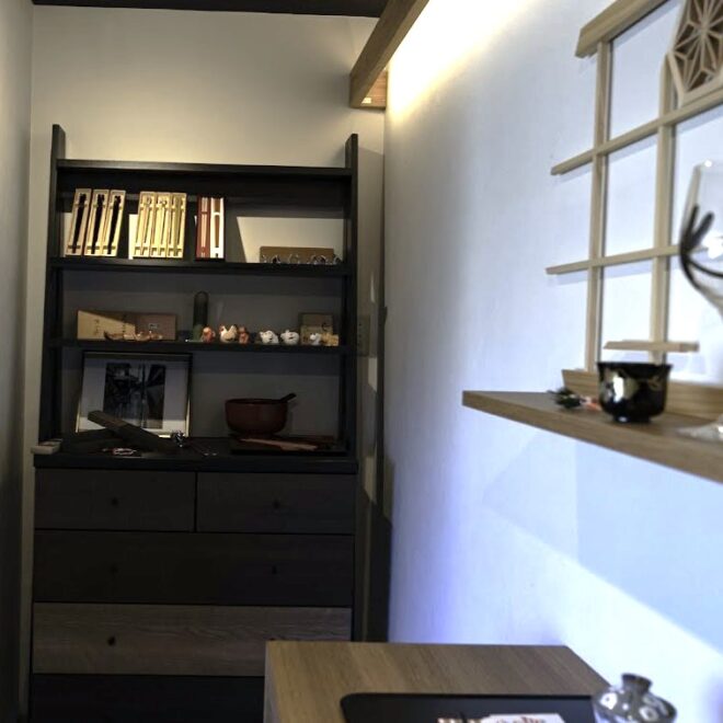 2階の特別室は、京塗り・京蒔絵装飾技法で洗練された美意識のある高付加価値新商品の展示コーナで、お箸の最上級商品に位置付ける「KAEDE」High Brandを展開しています。去年の10月11日に開業し、現在に至り、見学希望者が徐々に増えてきました。そしてお客様を誘導する際、手すりを付けた方が、特にご高齢のお客様が安心されると考えて、3月に手すりを取り付けました。