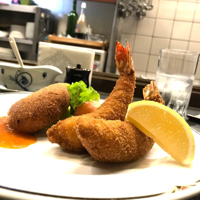 ところで、なんとなく「洋食」とは西洋料理のことだと思うのですが、欧米諸国の食文化をそのまま受け入れたわけではなく、日本人の口に合うようにアレンジした料理が洋食と呼ばれているようです。そうして生まれた日本的な洋食の代表が、ポークカツレツ、カレーライス、コロッケ、カキフライ、エビフライ、オムライス、うどん、そば、ラーメン等です。