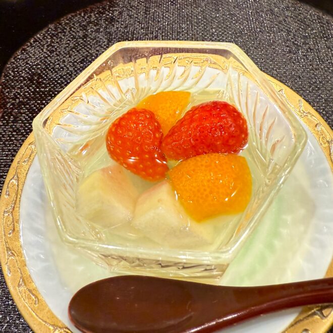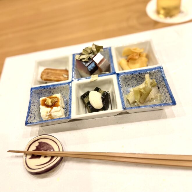 祇おん福寿さんでの会席料理を楽しむ際、お酒を少量だけいただきます。向付(刺身)を楽しむ際には、ぬる燗をコップ半分ほど。これにより、ご飯をいただくころには顔の赤みも引き、最後まで心地よく料理を味わうことができます。