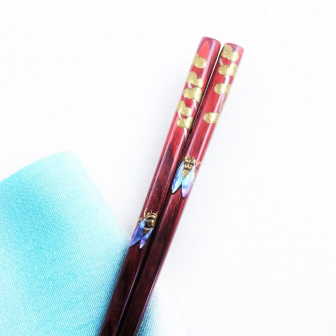 蝉は、不死あるいは死後の生を象徴します。蝉は芋虫のような幼虫として数年を土の中で暮らし、成虫になる時に地上に出て羽が生え空を飛ぶようになります。その様子が人が仙人になって羽が生え、神仙世界に昇仙する様子とよく似ているので、「羽化登仙」という意味を持ちます。