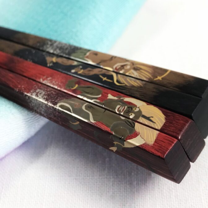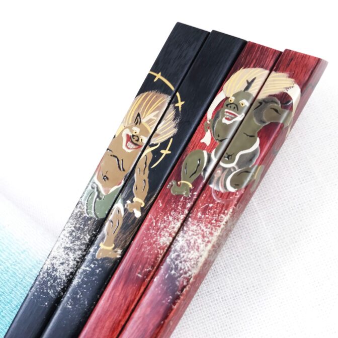 俵屋宗達筆の屏風画が有名で、風袋から風を吹き出し風雨をもたらす風神と、太鼓を叩いて雷鳴と稲妻をおこす雷神の姿を描いた絵画です。建仁寺が所有しています。